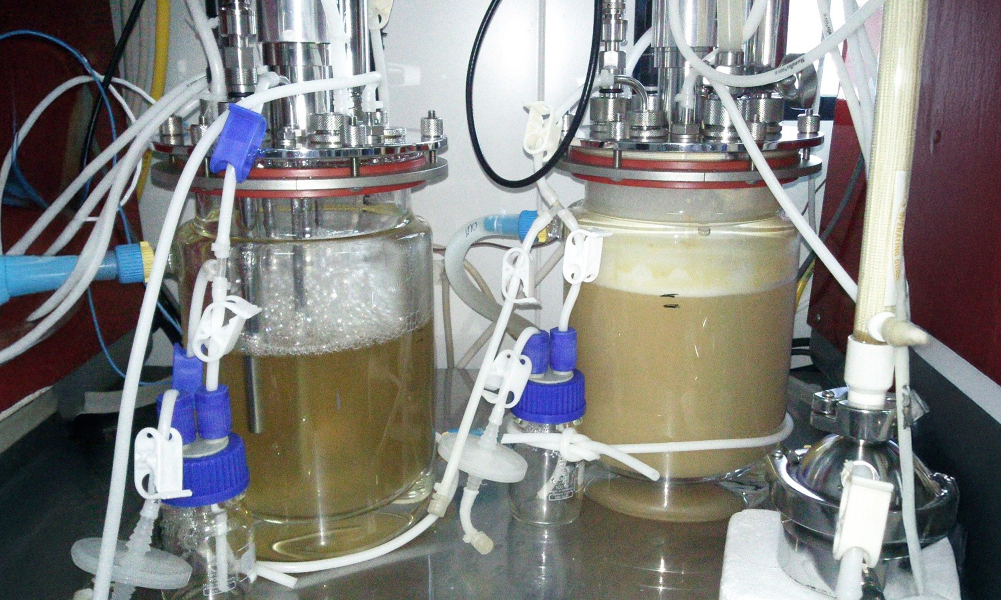 Егор Быстров производит засев одного из первых 250-литровых биореакторов, 2011 год