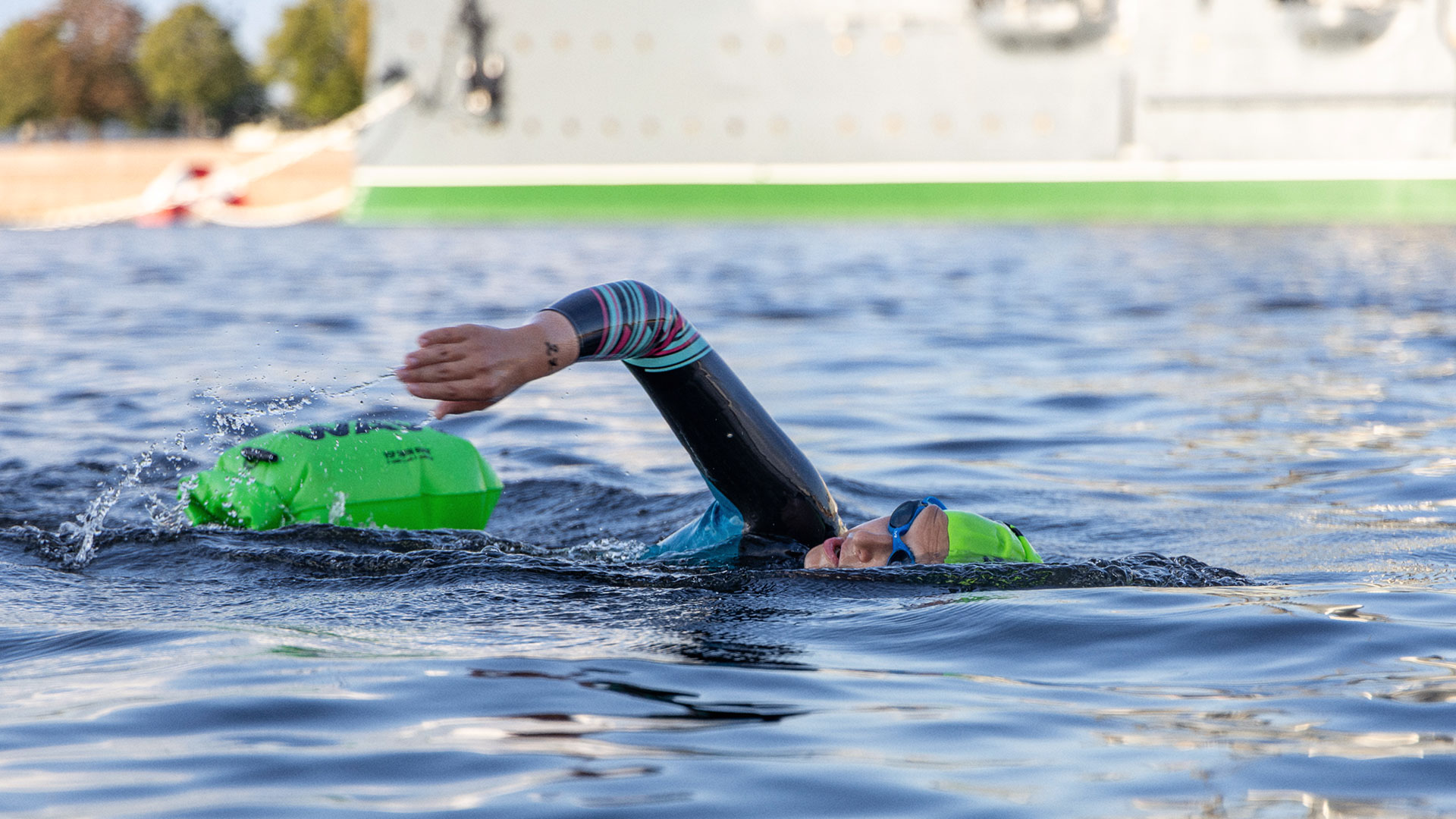 В день старта, 9 августа 2025 года, мы собирались в 4:15 у причала храма Божией Матери «Всех Скорбящих Радость» в Санкт-Петербурге. Накануне из-за волнения я почти не спала, переживала. И вот в 5:00 объявили старт. Когда я нырнула в воду, то поняла, что не была готова к температуре около 15–16 °C. Хотя, казалось бы, август на дворе!