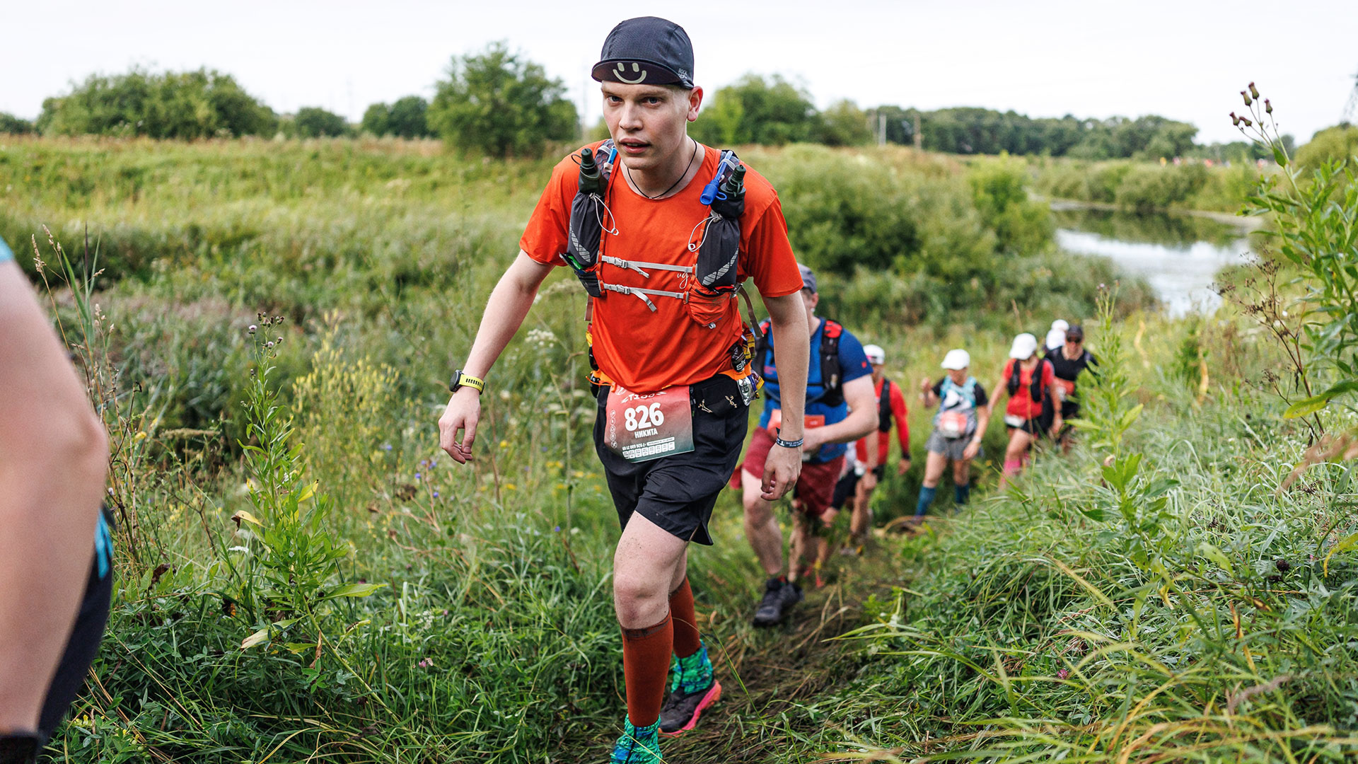 С 30-го по 70-й километр был автономный участок, то есть без пунктов питания. За 10 километров до его конца у меня закончились еда и вода. Появилось чувство голода — верный знак того, что энергия покидает бегуна. Это был самый сложный момент всей гонки. Я преодолел чуть больше половины пути и понял, что сил больше нет. Было очень жарко — около +25 °C, — но я все равно медленно продвигался вперед, держась на одной внутренней уверенности.