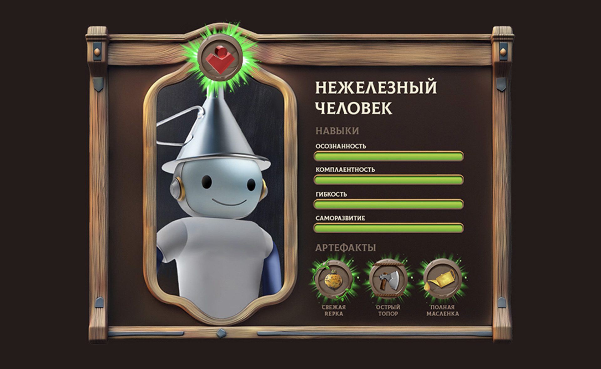 Чтобы ценности не остались абстракцией, у них появились «лица» — четыре сказочных героя. Мы выбрали формат архетипов: в каждом можно узнать реальные паттерны поведения и точки роста. В течение года герои сопровождали нас в пути «по дороге из желтого кирпича» — в материалах и активностях кампании, помогали переводить ценности на язык ежедневных решений: «как это выглядит в работе» и «что мы делаем по-новому».