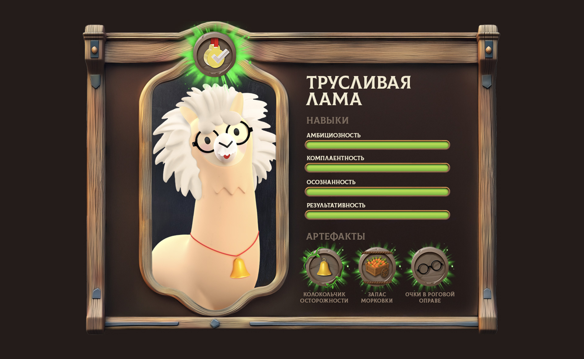 Трусливая Лама умная, но очень осторожная — настолько, что страх мешал ей браться за масштабные проекты и реализовывать свой потенциал. Но теперь все изменилось. В этом году, благодаря поддержке друзей, она научилась играть на победу: ставить амбициозные цели и доводить их до результата.