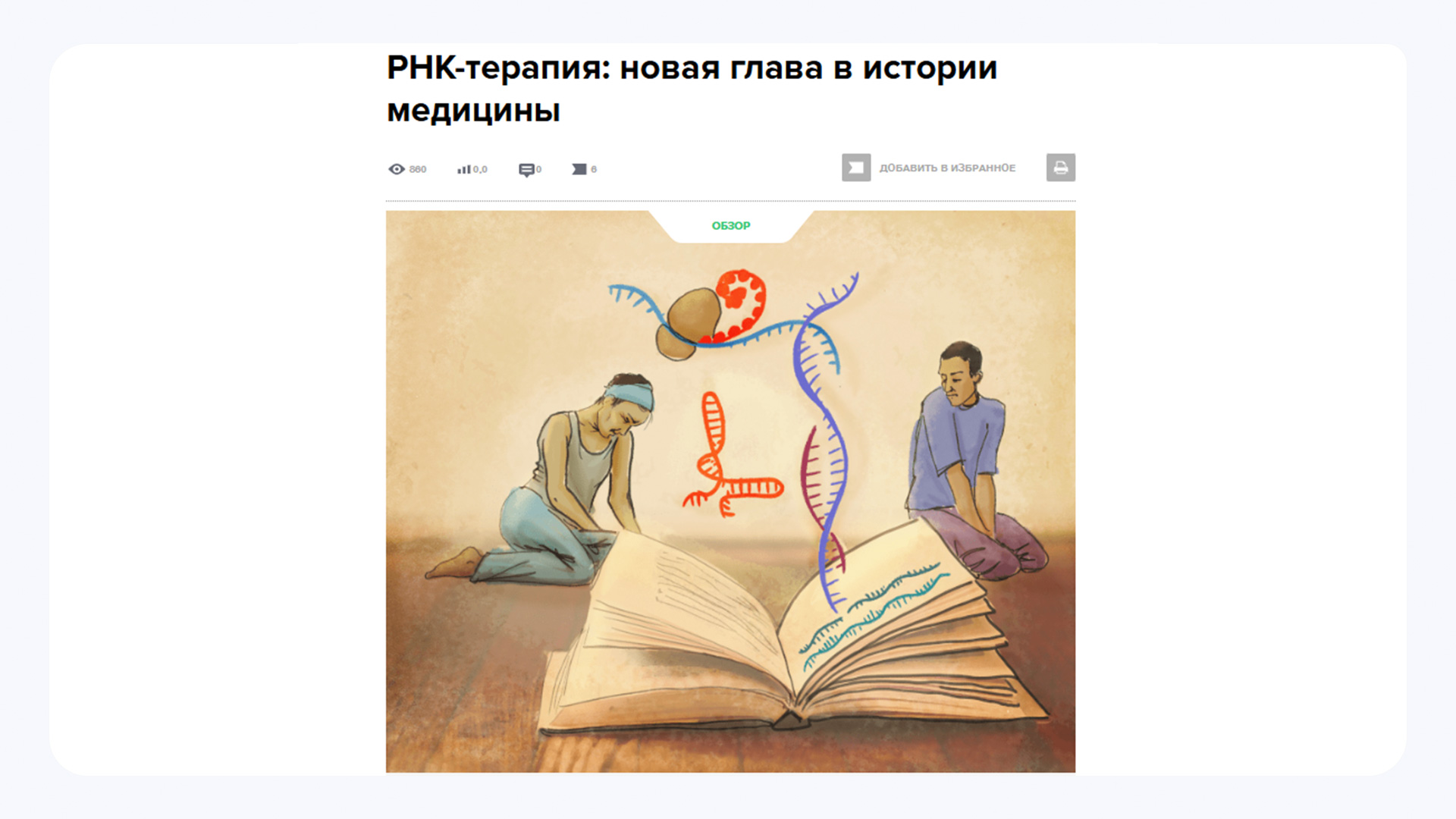 Наш совместный спецпроект с научно-популярным порталом «Биомолекула» набирает обороты — в рамках четвертого сезона вышла новая статья про РНК-терапию. В обзоре подробно разбирается путь развития этой революционной технологии, начиная от первых экспериментов с нематодами и заканчивая современными зарегистрированными препаратами, которые уже спасают жизни пациентов.