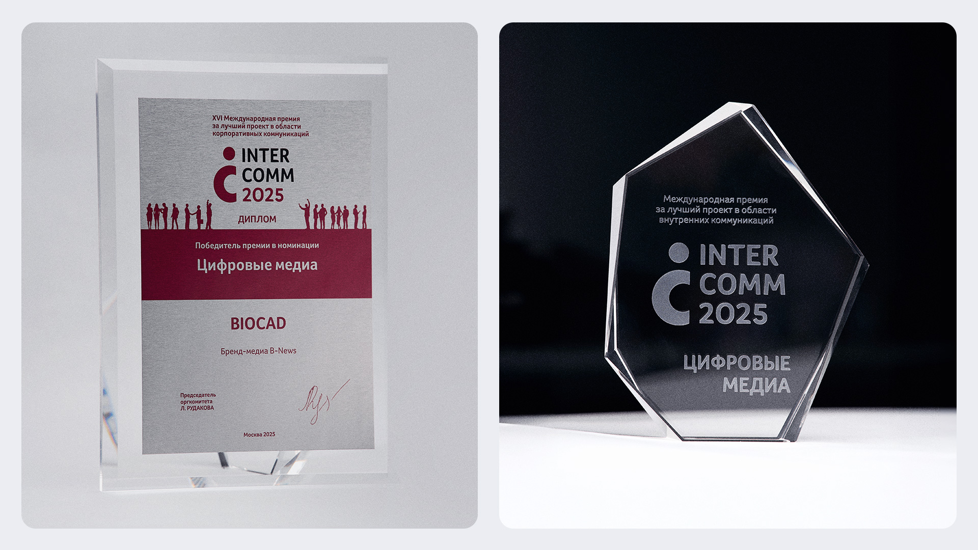 Второе награждение прошло 29 октября 2025 года на вручении XVI национальной премии InterComm в области внутрикорпоративных коммуникаций, где журнал занял первое место в номинации «Цифровые медиа». Это высокая оценка эффективности и качества внутреннего коммуникационного ресурса BIOCAD в цифровом формате.