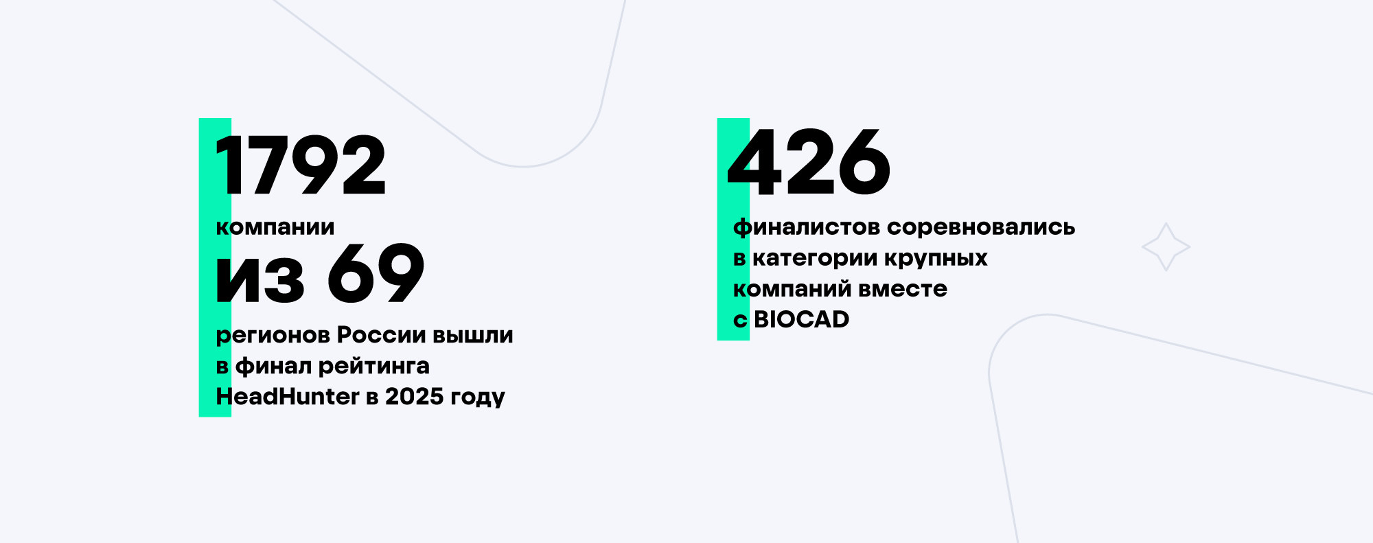 Наша компания вновь стала одним из лидеров среди работодателей России. По итогам ежегодного рейтинга работодателей HeadHunter за 2025 год BIOCAD занял первое место среди фармацевтических предприятий и вошел в топ-100 крупнейших компаний. Это признание в очередной раз отражает нашу приверженность созданию комфортных условий для сотрудников и развитию возможностей для карьерного роста.