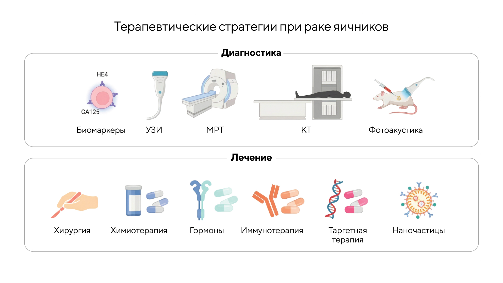 Существующие стратегии диагностики и лечения рака яичников. Источник: Cancer Gene Therapy