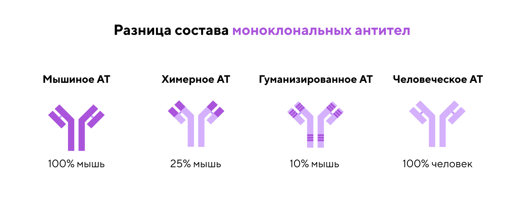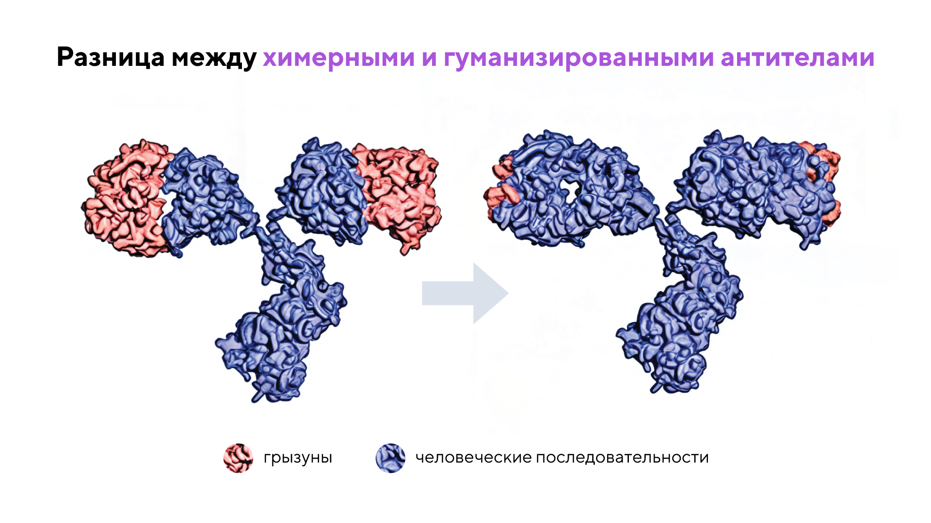 Иксекизумаб — гуманизированное моноклональное антитело. Гуманизированные антитела, как и химерные, состоят из разных фрагментов, но доля человеческого иммуноглобулина в них выше — до 95%.