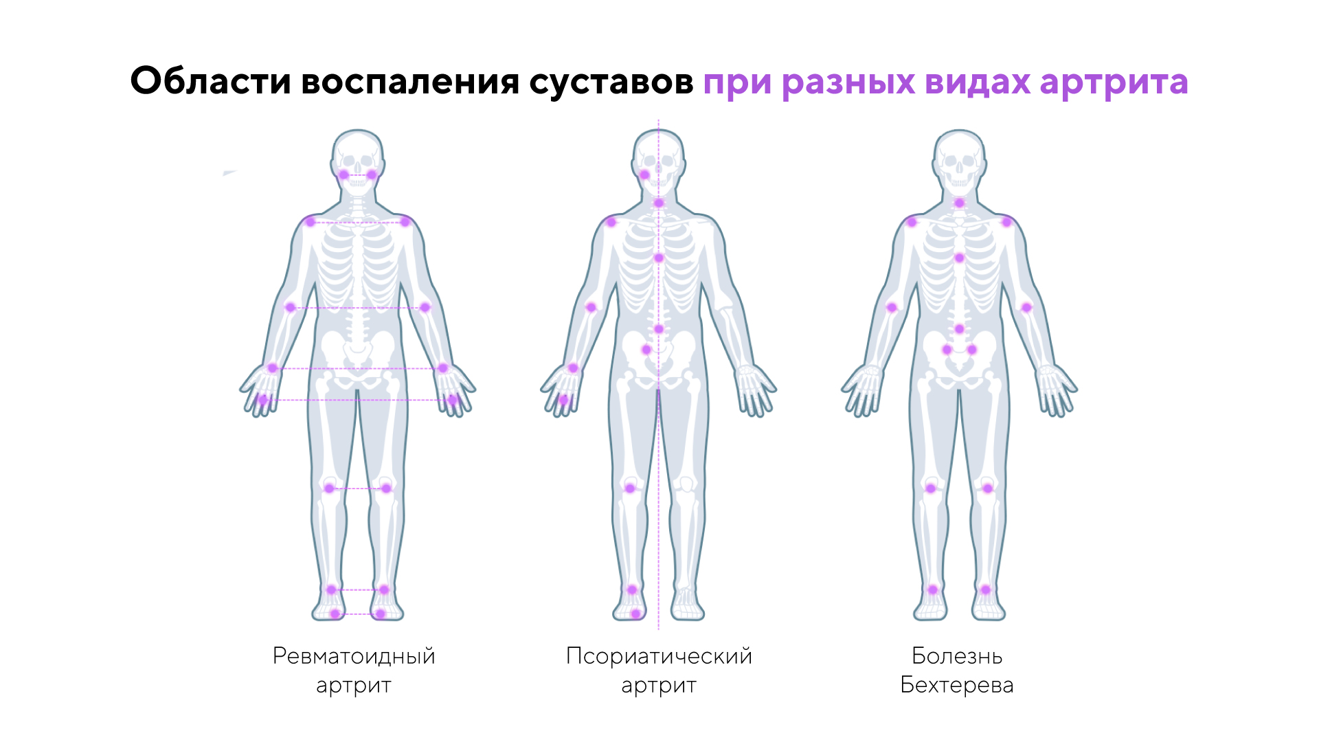 От артрита страдают не только пожилые. Пик развития заболевания — 30–55 лет. Аксиальный спондилоартрит, ревматоидный и псориатический артрит поражают людей в самом расцвете сил, а иногда даже детей. Наиболее распространен из них ревматоидный артрит. В России, по разным оценкам, им болеет от 800 тысяч до 1 миллиона человек.