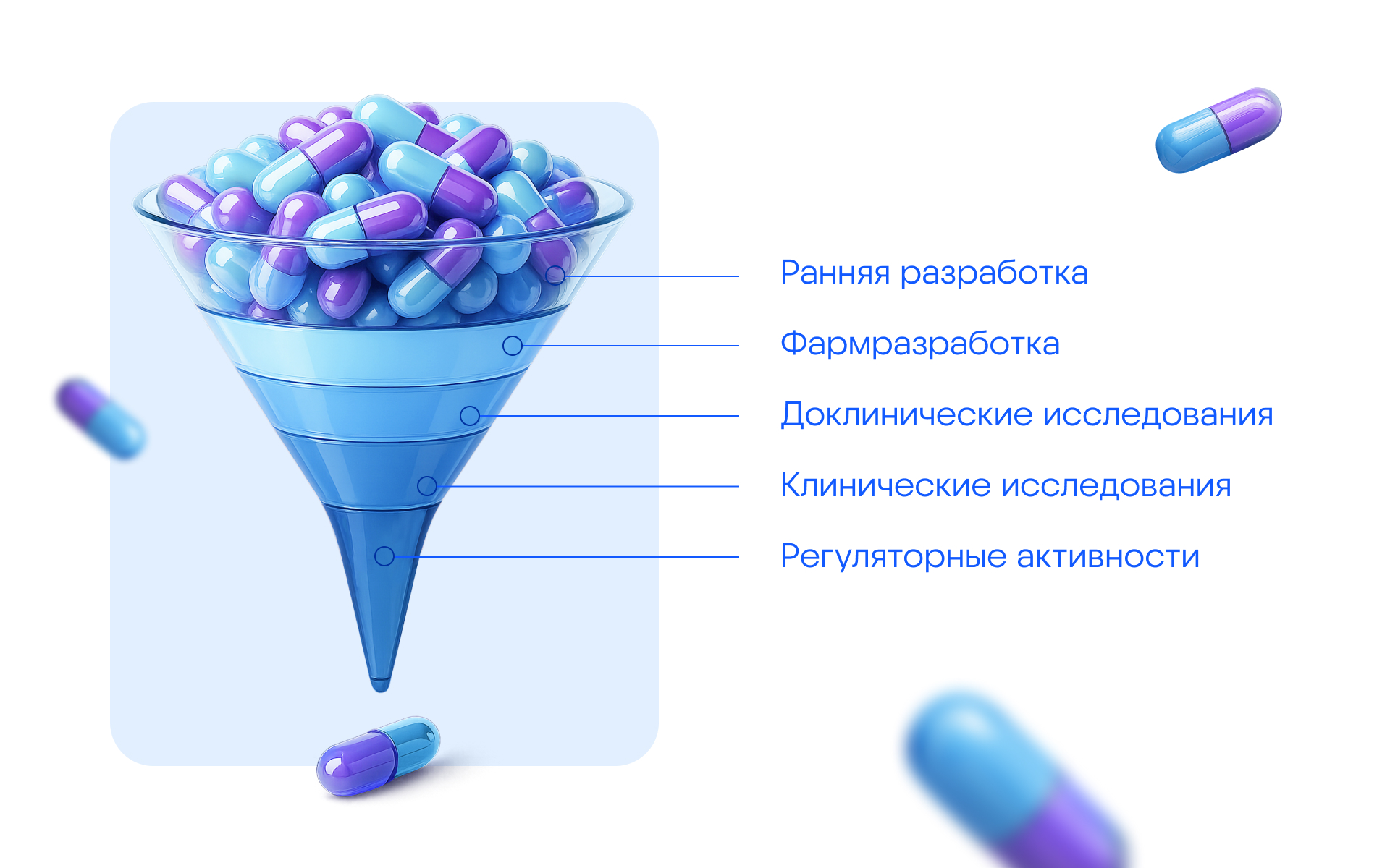 Создание нового лекарственного препарата — это масштабный проект, сравнимый с запуском космического корабля. В среднем процесс разработки может занимать от 10 до 15 лет и включать множество этапов — от поиска потенциальной молекулы до регистрации и вывода препарата на рынок. Каждый этап требует колоссальных вложений времени и средств. Особенно дорого обходятся клинические исследования, на которые приходится основная часть затрат, ведь для проверки эффективности и безопасности терапевтических средств на людях требуется большое число участников, длительный период наблюдения и строгий контроль качества.