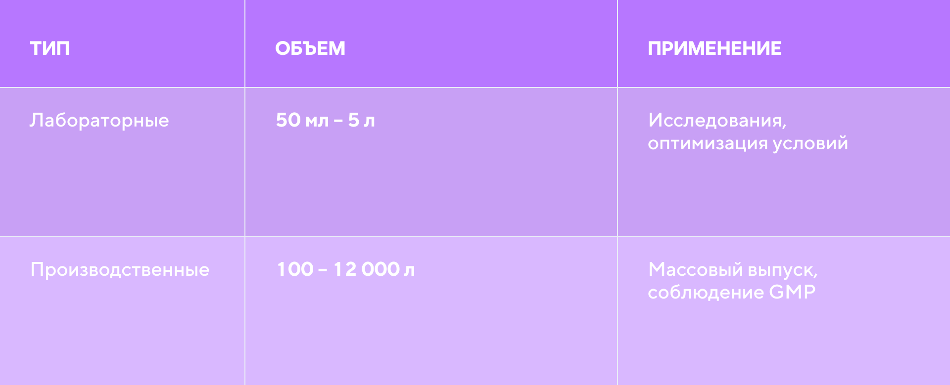 Главное — не тип, а то, что биореактор позволяет клеткам жить и производить белок в стабильных, воспроизводимых условиях.